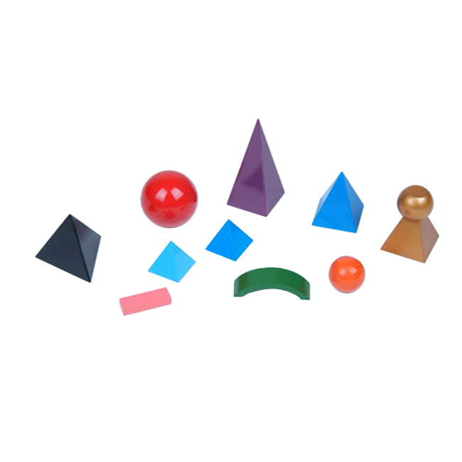 The Solid Grammar Symbols are used to demonstrate and introduce different parts of grammar in a sensorial way. The set contains ten different solid grammar symbols.