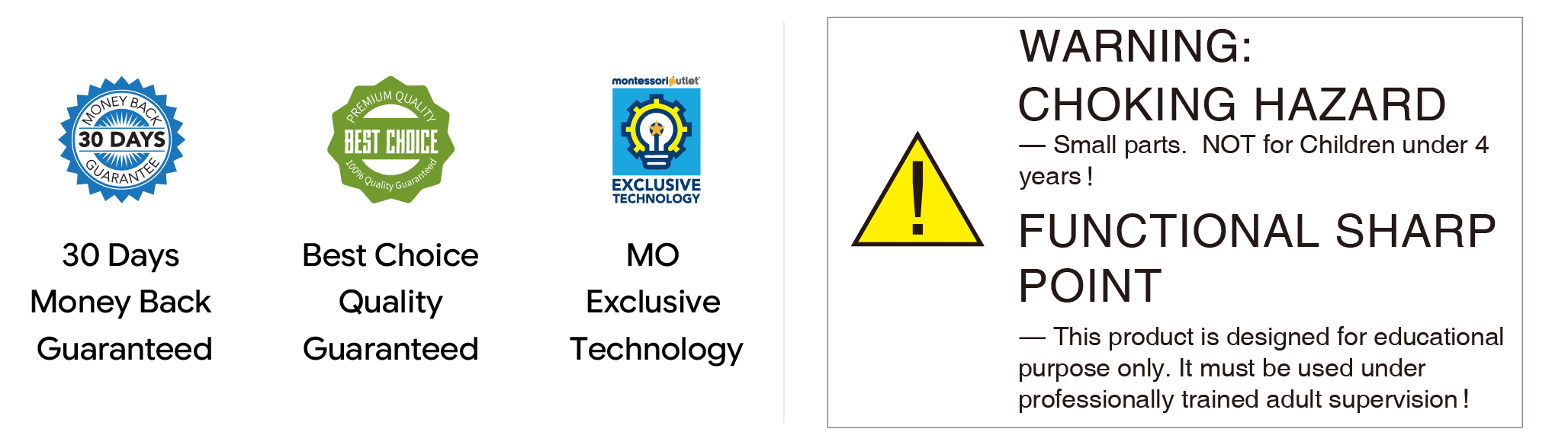 If items arrive damaged, defective, missing, or incorrect, contact us within 30 days for replacement. Montessori Outlet covers replacement shipping. Photos may be required for claims.