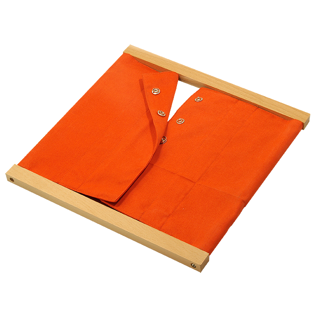 The direct aim in using the Montessori Dressing Frames is to help and encourage a child to dress independently. The child is indirectly advancing in fine motor skills and hand eye coordination. Each dressing frame focuses on one aspect of dressing and allows the child to practice each step several times in order to perfect it. Durable cotton fabric attached on German beechwood frame, that can be removed and washed. Speical designed size for young children.
