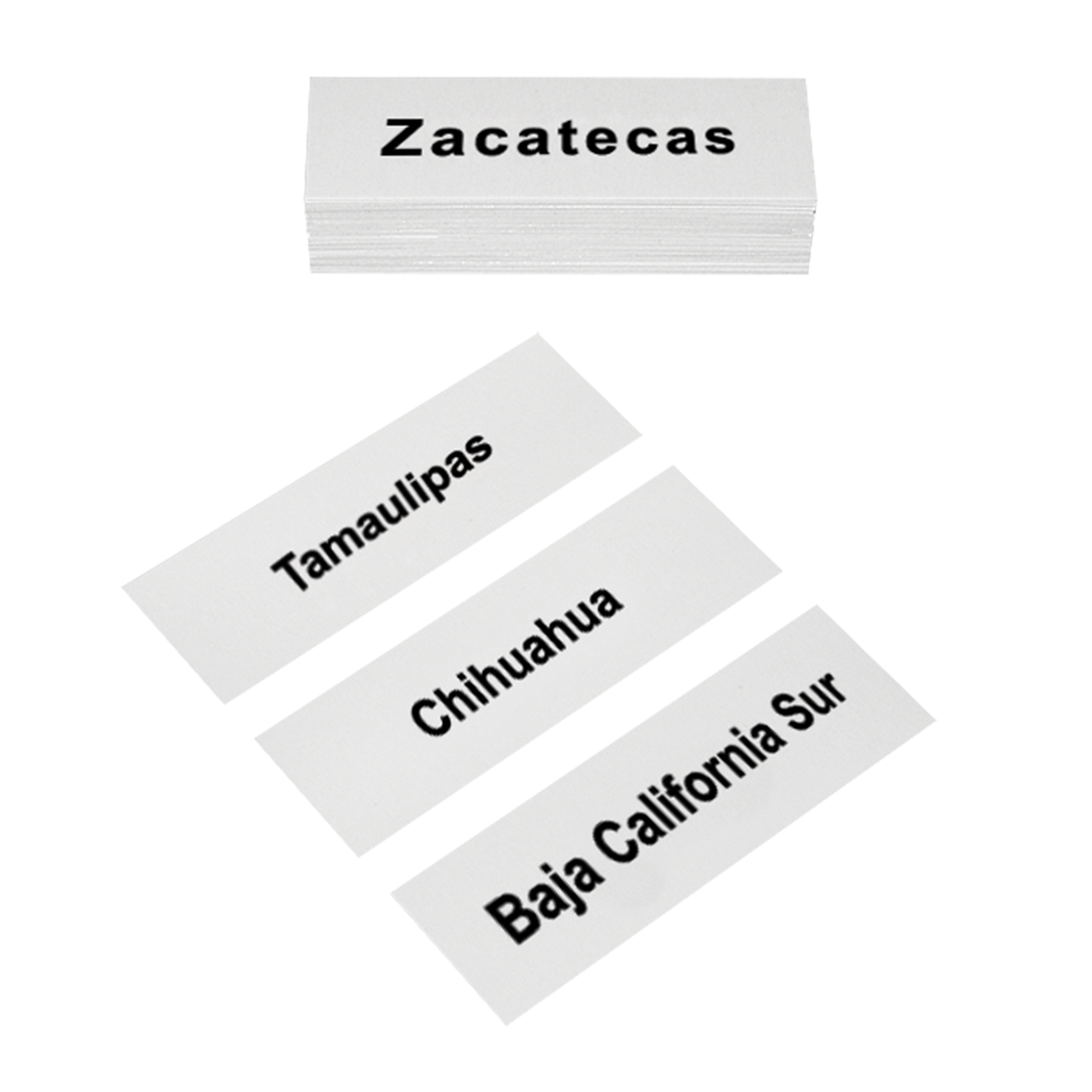The Labels are used with the geography puzzles for the child to identify each continent, country, or state. A set of labels printed with 14 states names to be used with the Puzzle Map of Mexico.