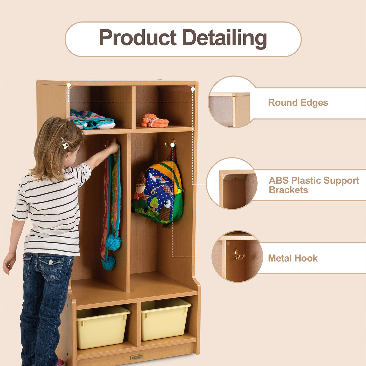 Kohburg Lockers systems feature ample storage space for little ones' belongings, hangers for coats and jackets and tote storage for small treasures. Build your dream welcome area now and have the flexibility to change it later. Use various lockers together to create an entire center!