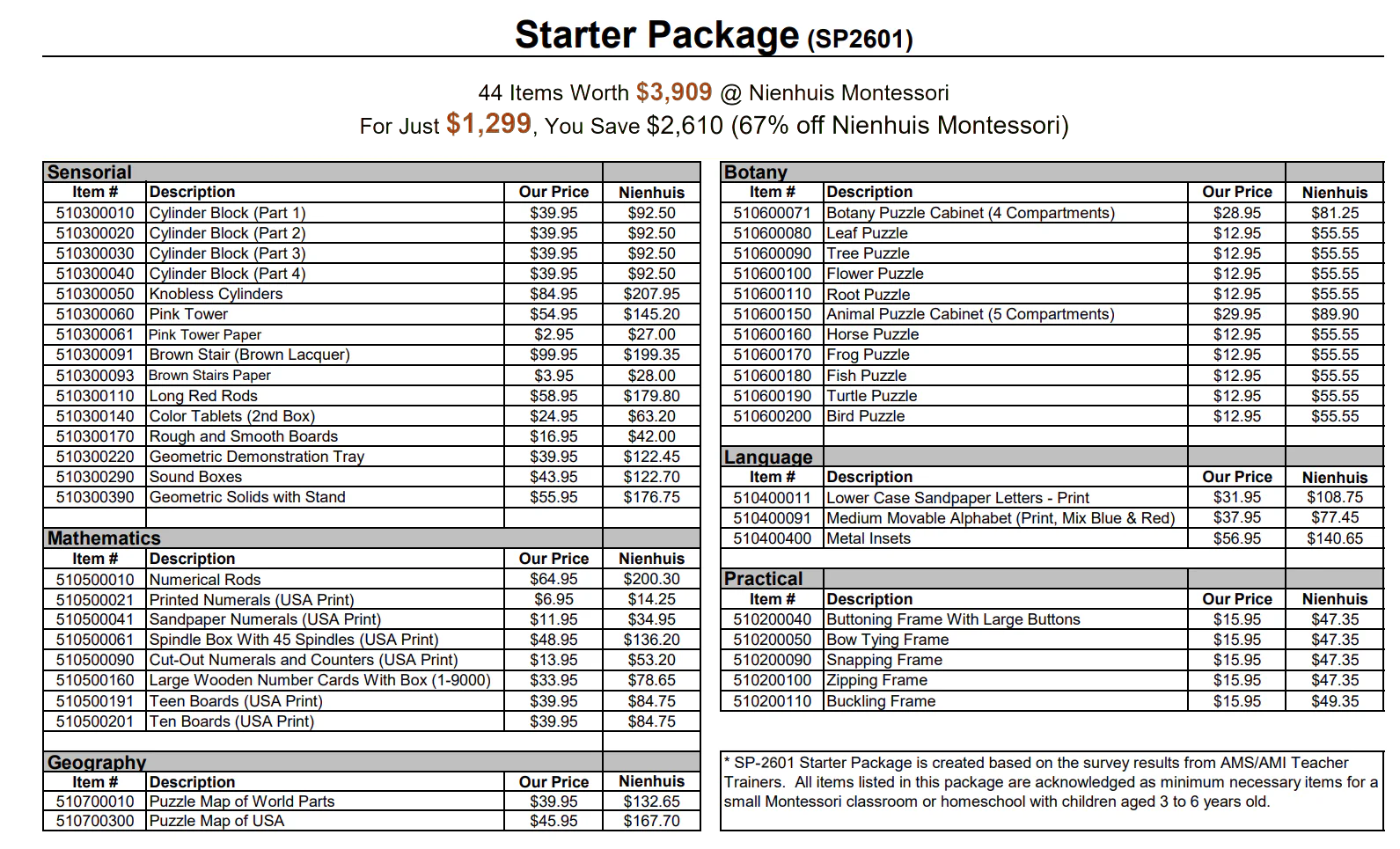 missing, or incorrect, contact us within 30 days for replacement. Montessori